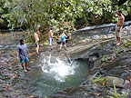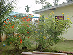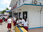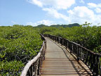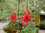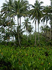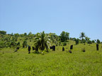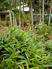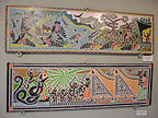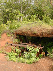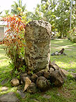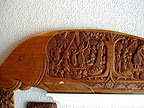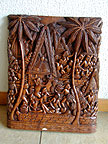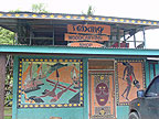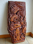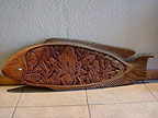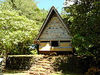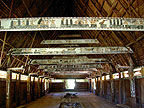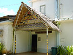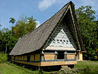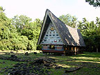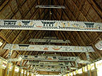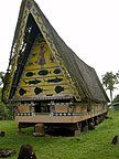 ※バイ(A Bai) バイとは「A bai」と書き、草葺きの三角屋根の建物で昔は集会所としての役割があったパラオらしい歴史的建造物。似た様な建築物がマレーシアやインドネシアからも発見されていますが、パラオのアバイは鉄のクギやネジを一切使っていない点が独特です。 主に男性が使用するもので、女性の立ち入りが禁止されているバイと、集会を開いたり、子供たちが狩や大工仕事を習う場所として使用されるバイと二つに大別されます。 バイの大きな特徴は外壁などに描かれている絵文字や木彫りで、海や人、動物などを題材にストーリーを表現しています。