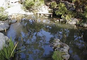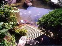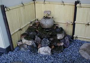 上の水鉢から出る水滴がその下の洞窟(空間)に落ちる落下音を楽しむものです。