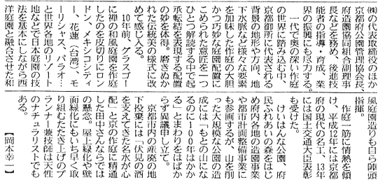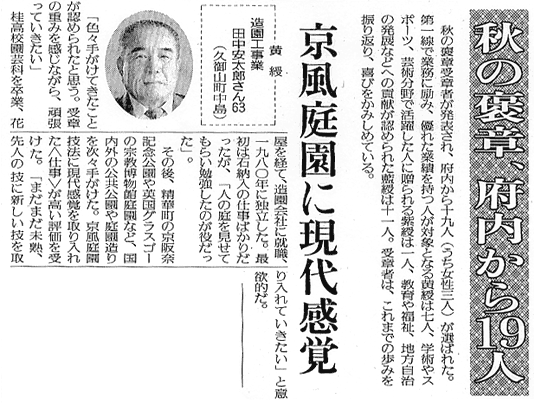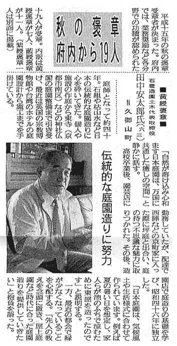石豊造園土木株式会社の代表取締役・田中安太郎氏の記事。
